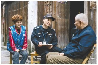 圖為民警與“鄉(xiāng)親大走訪”隊員一起走訪了解社情民意。 陳權 攝