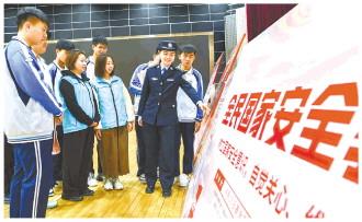圖為天津市濱海新區(qū)大港街道相關(guān)單位工作人員走進轄區(qū)學(xué)校開展“國家安全”普法宣傳。