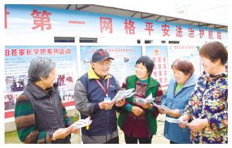 圖為江蘇省啟東市海復鎮(zhèn)廟基村“法律明白人”倪伯蒼(左二)向群眾普及法律知識。