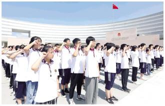 圖為江蘇省南京市第一中學2023級高一新生在南京憲法公園參加“禮敬憲法·法潤青春”活動。