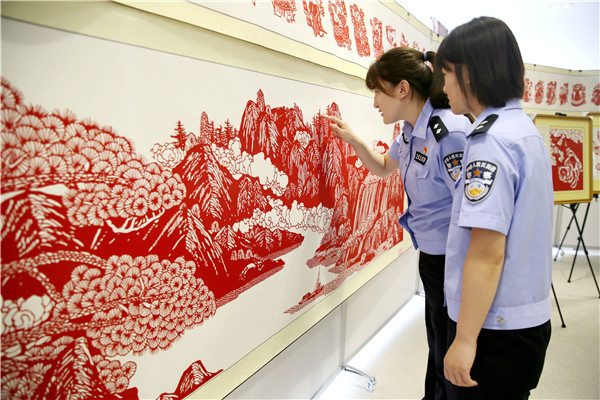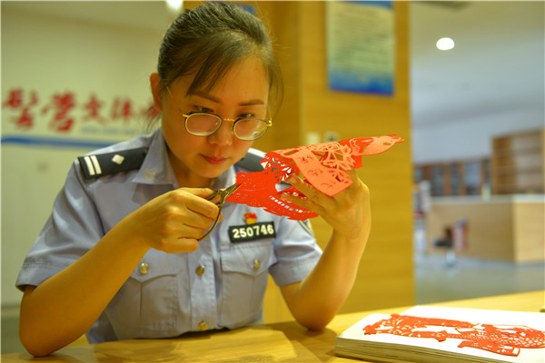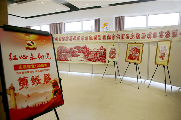 6月29日,山東出入境邊檢總站黃島出入境邊防檢查站舉辦“紅心永向黨”——慶祝建黨100周年剪紙展?!?6個(gè)民族大團(tuán)結(jié)》《不忘初心 牢記使命》《光輝歷程》等近百幅作品構(gòu)圖精美、立意鮮明,映射出創(chuàng)作者對黨和祖國的熱愛。