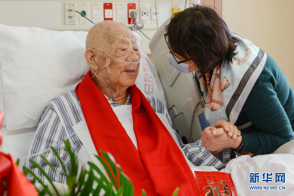 2020年12月1日,辛育齡在北京中日友好醫(yī)院與女兒交流。新華社發(fā)(蔡瑩瑩 攝)