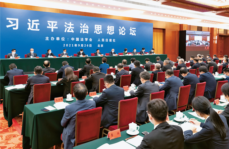 2021年9月26日,由中國法學(xué)會(huì)和人民日?qǐng)?bào)社聯(lián)合主辦的習(xí)近平法治思想論壇在京舉行。論壇以“堅(jiān)定不移走中國特色社會(huì)主義法治道路,為全面建成社會(huì)主義現(xiàn)代化強(qiáng)國而努力奮斗”為主題,旨在推動(dòng)社會(huì)各界特別是法學(xué)法律界認(rèn)真學(xué)習(xí)、深入研究、扎實(shí)宣傳習(xí)近平法治思想,自覺用習(xí)近平法治思想武裝頭腦、指導(dǎo)實(shí)踐、推動(dòng)工作,譜寫新時(shí)代全面依法治國新篇章。 《民主與法制》社記者 戎珊/攝