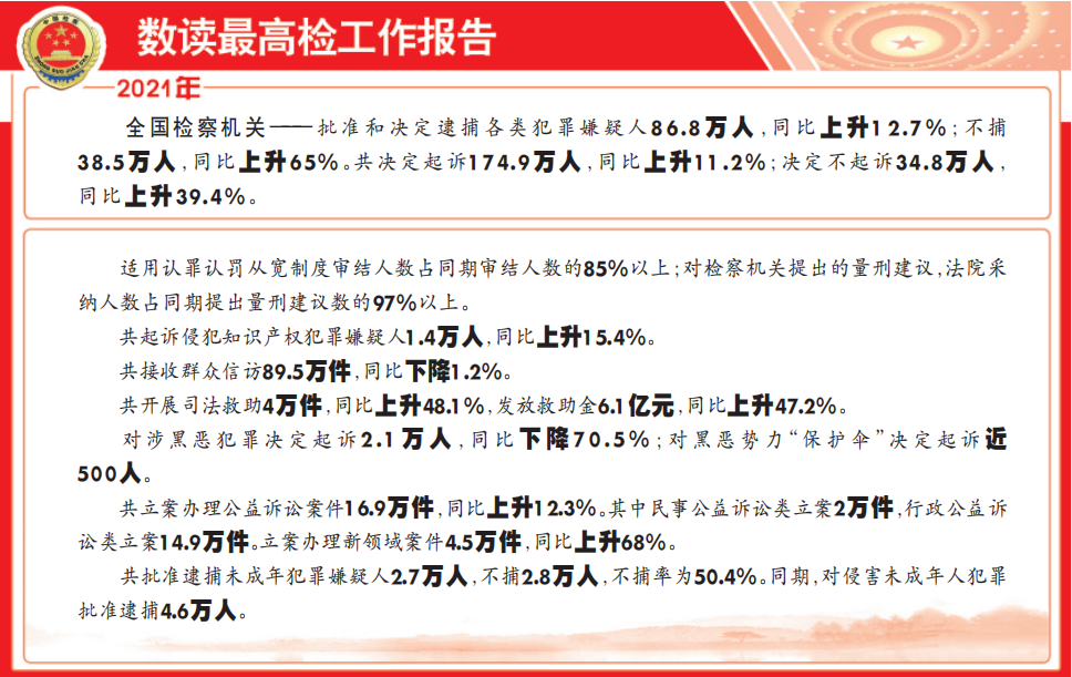 積跬步以至千里。2021年,全國檢察機關(guān)通過能動履職將司法理念與百姓身邊的案件相結(jié)合,直觀釋法說理,促進社會公眾理解、遵守法律,提升法治意識,共辦理各類案件363.7萬件,同比上升20.9%。一個個具體案件中,檢察機關(guān)將政治建設(shè)、業(yè)務(wù)建設(shè)融為一體,“見微知著”挖掘深層次矛盾、苗頭性傾向性問題,用匠心推進訴源治理,助力國家治理體系和治理能力現(xiàn)代化。