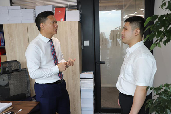 實習律師的身份并沒有讓盤銘徑停下腳步,除了大量檢索勞動爭議案件進行學習外,他的手機里最多的是與指導老師蔡飛的問答交流。“他是一個專業(yè)而且負責的助手。”蔡飛說。