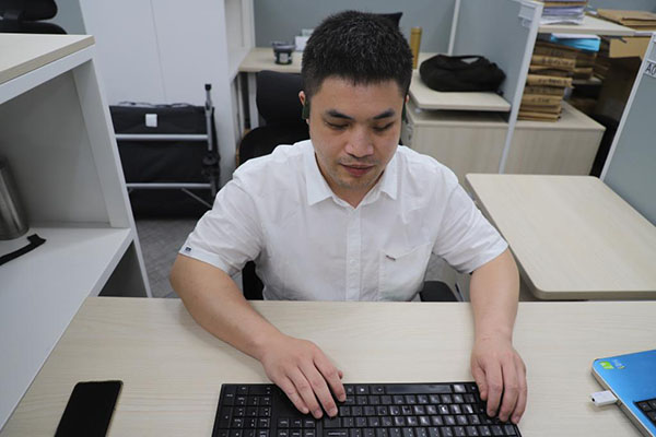 “您好,我是實習律師,請問您申請了勞動仲裁嗎?”在廣州城市中央的寫字樓內,盤銘徑正協(xié)助參與線上勞動爭議調解,這是他的工作日常。不久前,盤銘徑領取了法律職業(yè)資格證書,成為廣州首位領證上崗的視障實習律師。